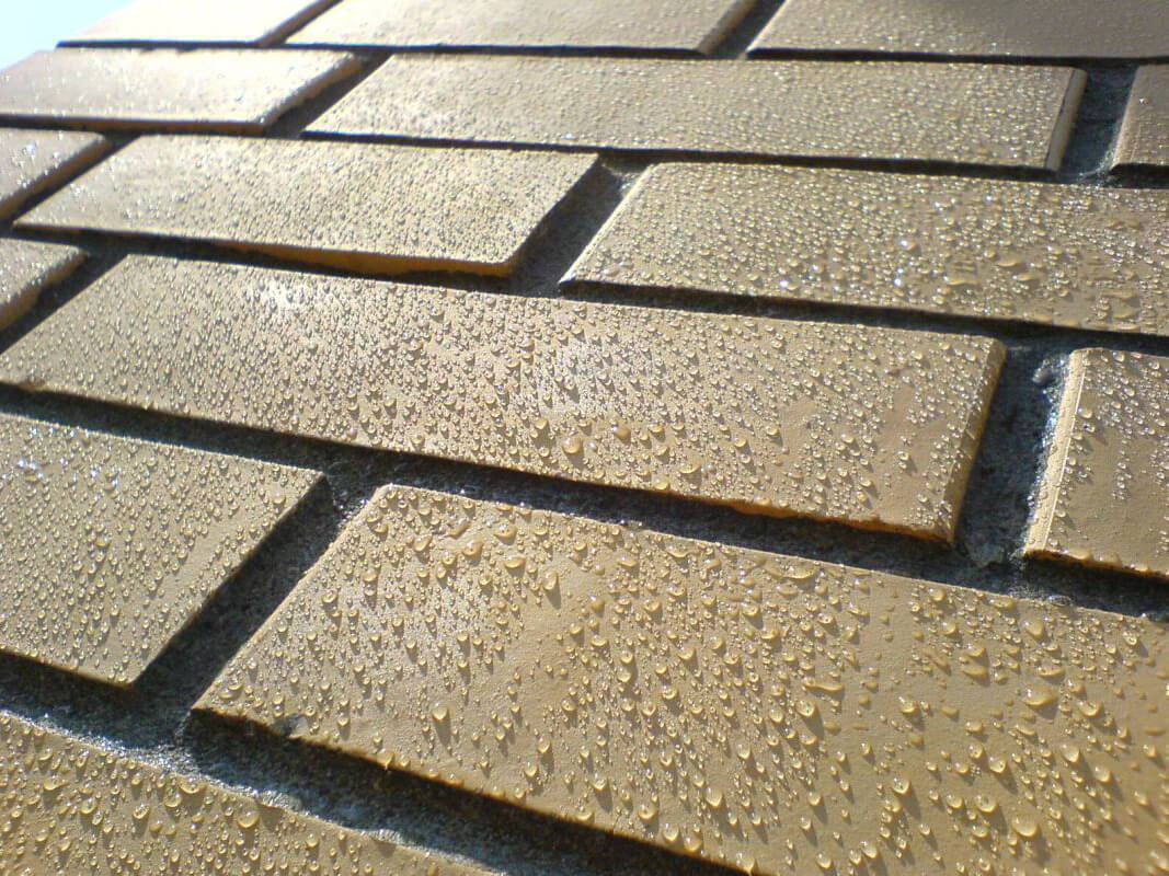 Поэтому следует оградить материал фасада от попадания в него влаги. Наиболее эффективно (по сравнению с лаками, красками и акриловыми пропитками) этот вопрос решают кремнийорганические гидрофобизаторы, после нанесения, создающие на поверхности облицовки (кирпич, штукатурка, декоративная плитка и т.д.) водоотталкивающие свойства и при этом не снижающие паропроницаемость самого материала.